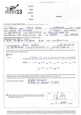 Hemos actualizado nuestra web www.dorsal13.com y ya podéis encontrar la hoja de inscripción para esta nuestra temporada, si sois NUEVAS ALTAS (alumnos nuevos en la escuela o que hayan estado en la semana de tecnificación) y RENOVACIONES (alumnos que han estado el año pasado en la escuela).