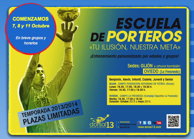Comenzamos Nueva Temp. Dorsal13 Escuela de Porteros 2013/14 (Gijón y ahora Oviedo)