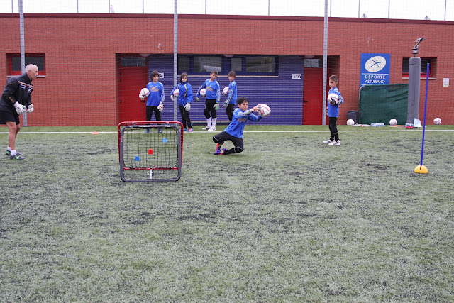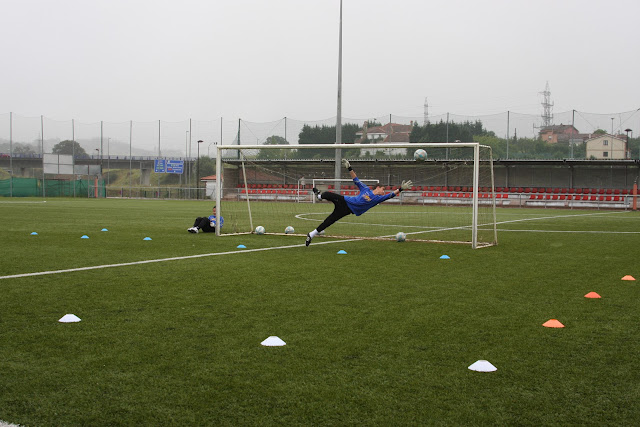 Los mayores trabajaron despejes de puños, ejercicios de coordinación y equilibrio, desvíos además de una posta de enfrentamientos entre ellos siempre con premisas marcadas, los mas peques siguieron su trabajo en el campo de futbol 8, sus postas hoy fueron: desvios, desplazamiento, posicionamiento y juego con el pie.