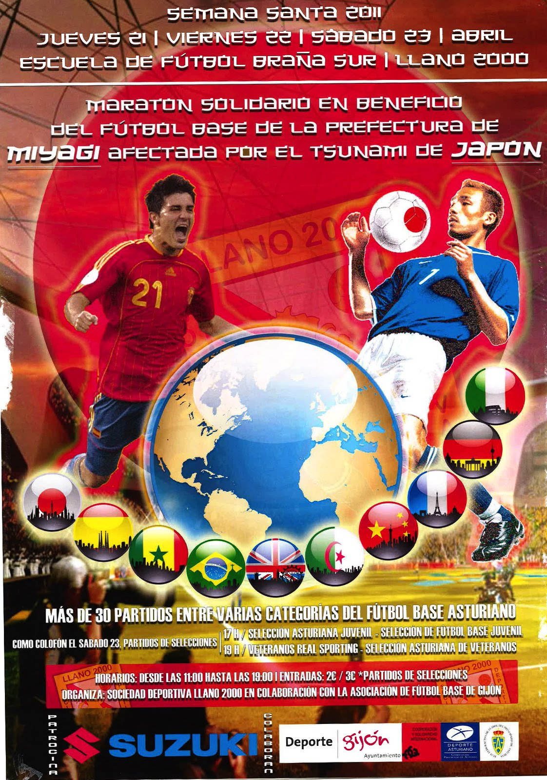 abril 24, 2011El Llano 2000 organiza en Semana Santa 21,22 y 23 un torneo con fin de racaudar fondos para el futbol base japones. Una fantástica iniciativa. Os invitamos a colaborar y asistir en algun momento al maratón de fútbol que han preparado.