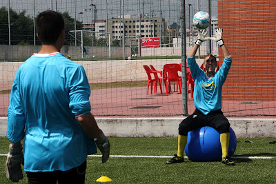 Por la tarde recibimos la visita de Cesar Muñiz (arbitro asturiano internacional) que solucionó el aluvión de dudas y preguntas de nuestros porteros y nos habló de las nuevas normas en el reglamento que hay sobre el portero.